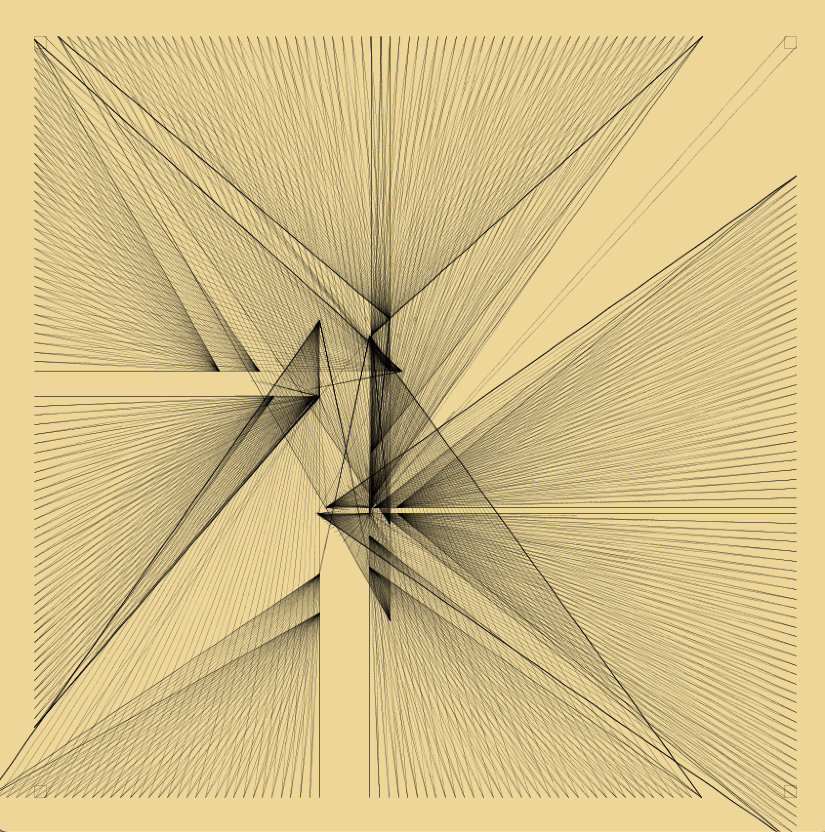 A drawing will initially feel secretive, even deceiving. My attempt to reviel or unlock the drawing, will force me to integrate logic, intuition and subconsciousness. I would go to bed puzzled, after many hours of coding, unable to find the algoritm that would produce the pattern in the drawing. Then wake up knowing exactly how to think about it. I feel robbed somehow, to find that my ability to simply 'feel' the drawing, does not satisfy my curiousity. Embedding my self in the geometic problem of the drawing is what gives me energetic access to the drawing.