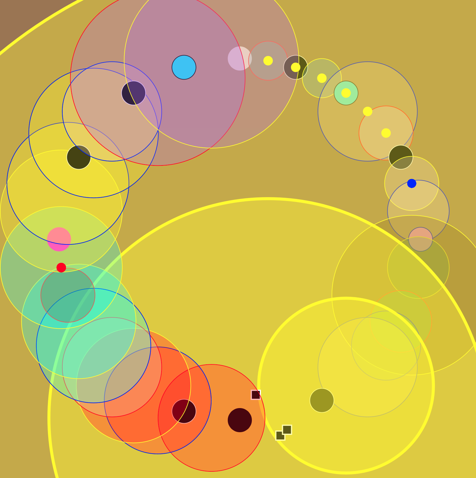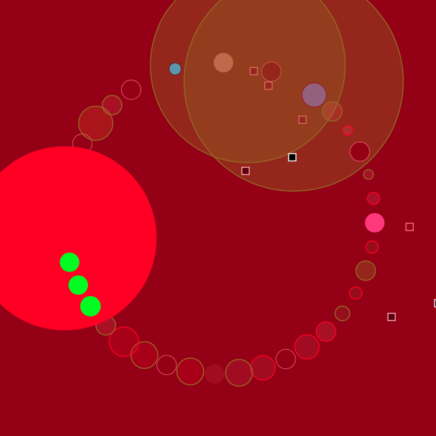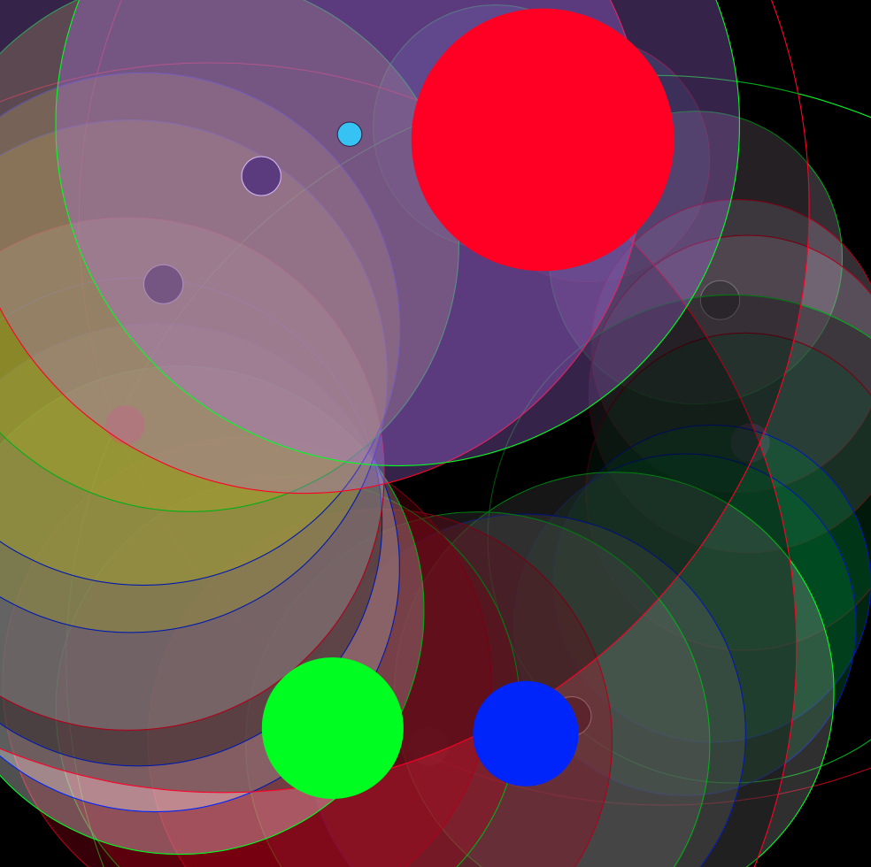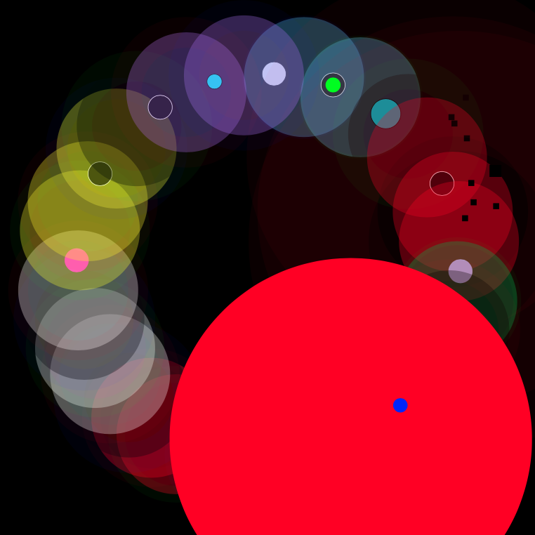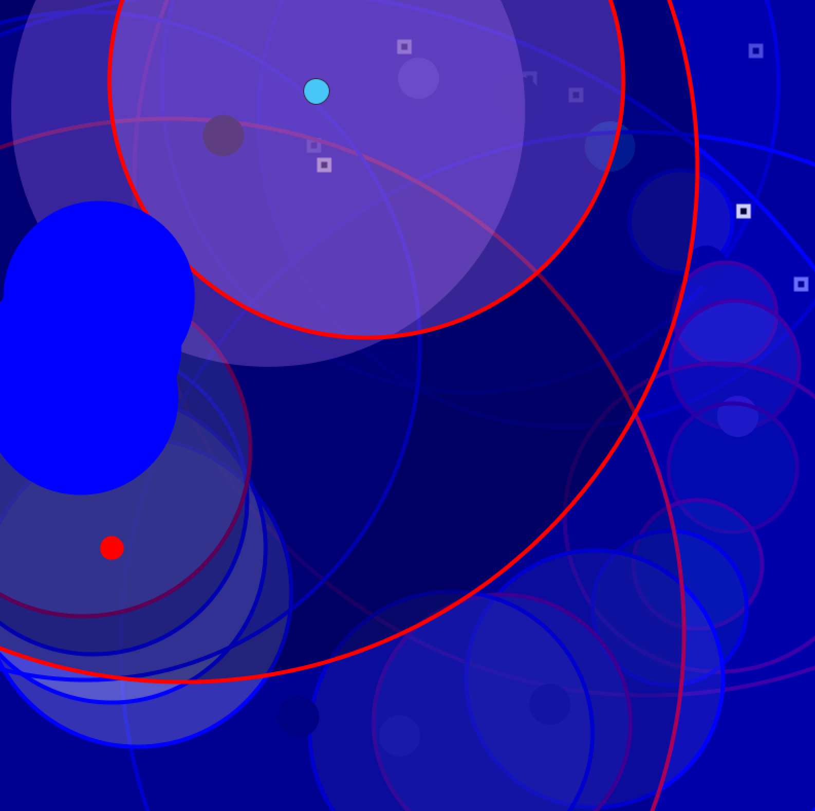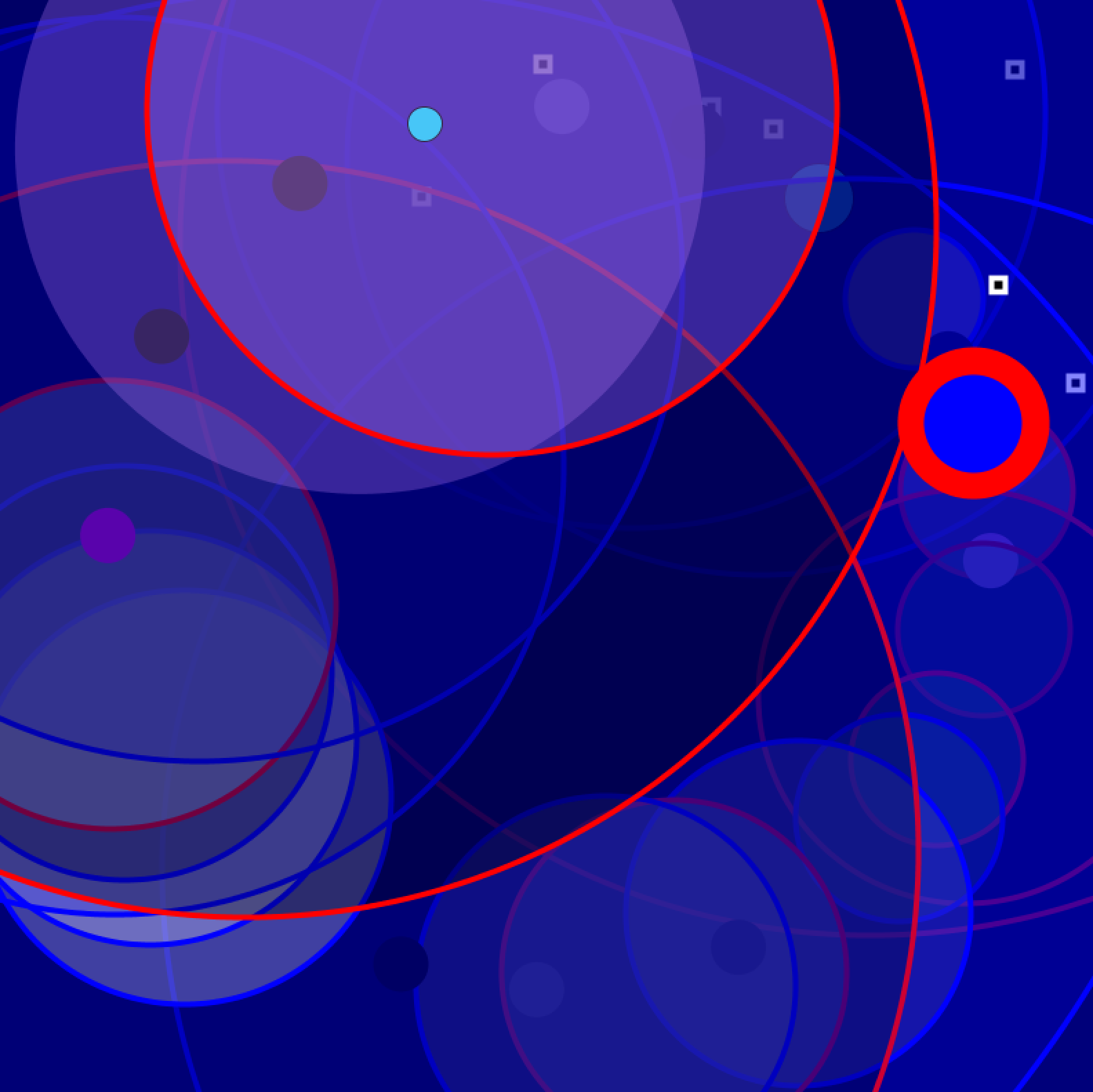 Occasionally no one manages to get a monopoly, the initial equality persists. Neither wealth or powerty exists. No houses will be build and nothing will stop the cirle of money changing hands. As new money is continually added to the system and no one can drain the others, the solid primary colors of the players will eventually take over the entire screen.