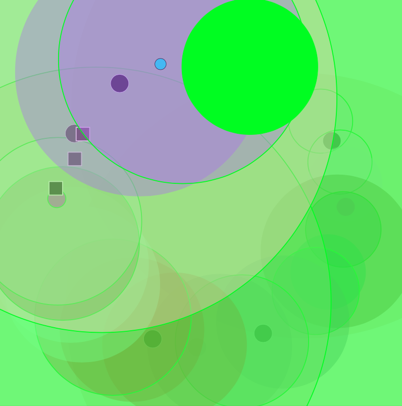 The algorithm follows the rules of capitalism, simplified by Monopoly, the board game. Shapes represent the artefacts of the game: fields, players and buildings.